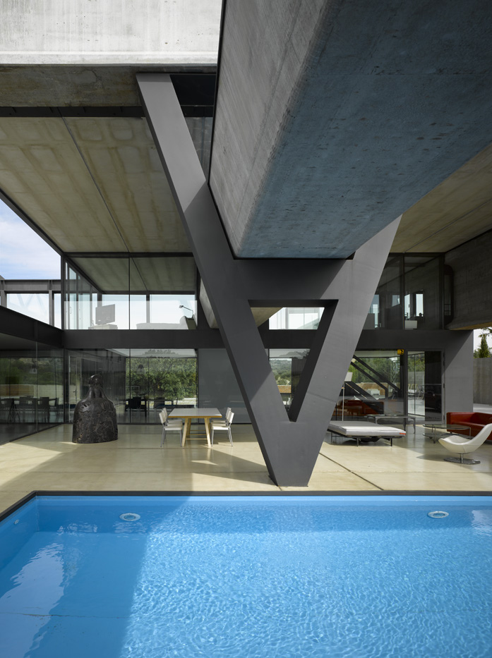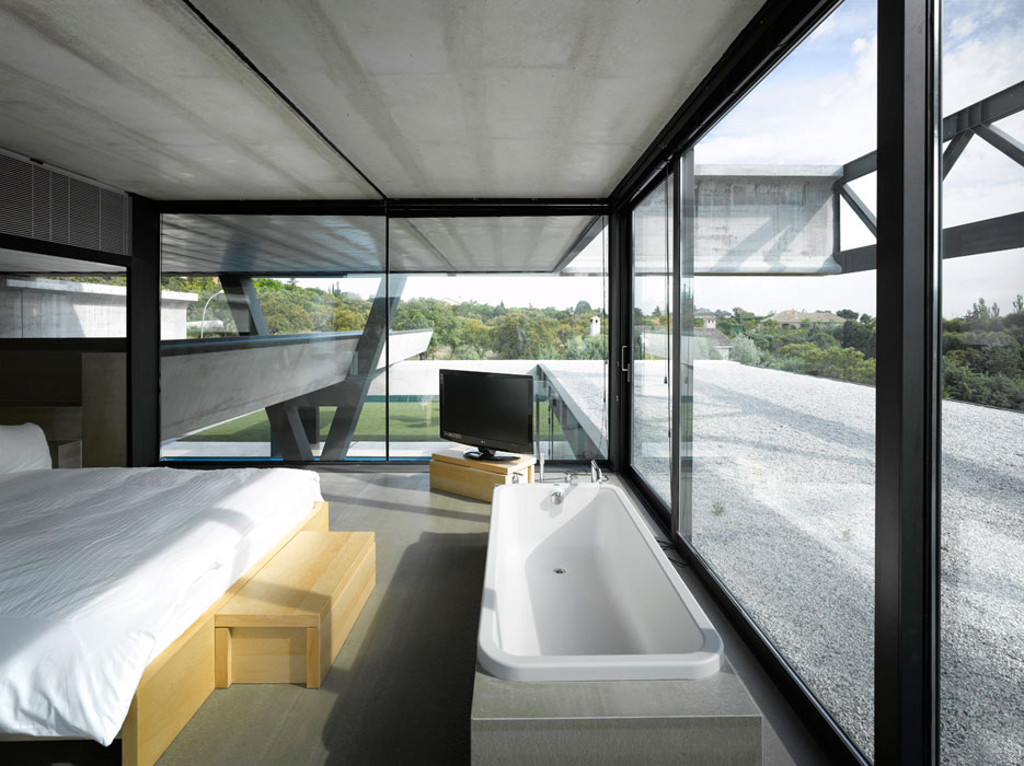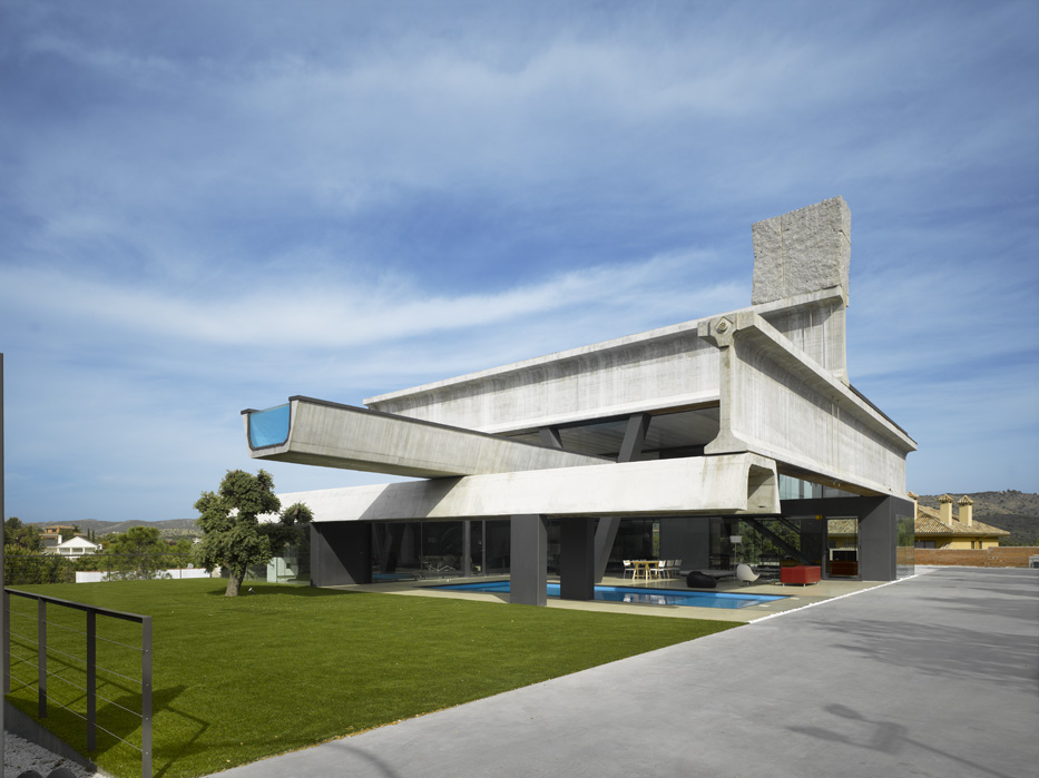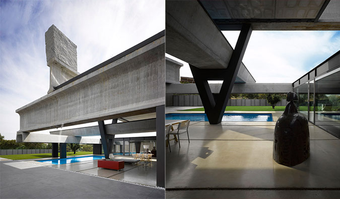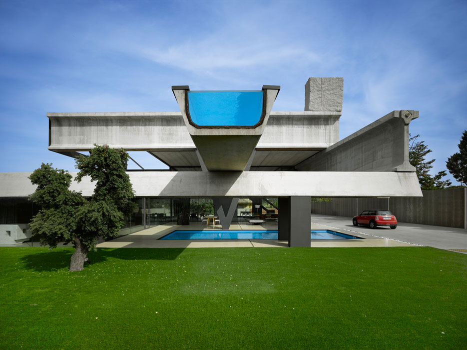 Esta é a casa Hemeroscopium, desenvolvida pela Ensamble Studios, e eleva a um outro nível a arquitectura pré-fabricada em casas. Ancoradas por granito de 20 toneladas de placas, estão três gigantes vigas, dois segmentos, duas vigas de aço e um canal. A estrutura demorou cerca de 1 ano a ser construída, mas apenas uma semana a ser montada.